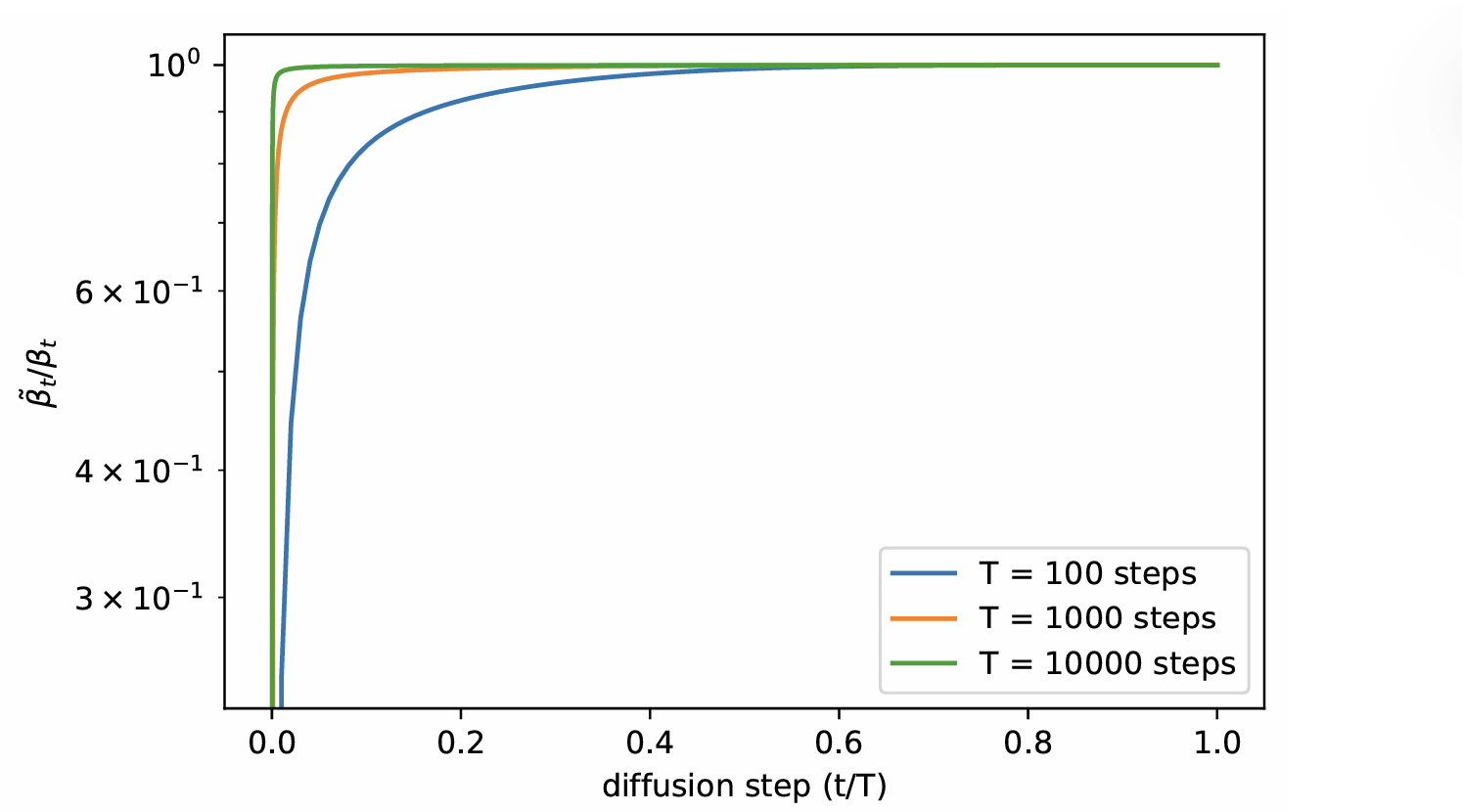 - $\beta_t$ is the noise variance schedule parameter. It corresponds to a variance schedule $\{\beta_t \in (0, 1)\}_{t=1}^T$, similar to the learning rate schedule.
